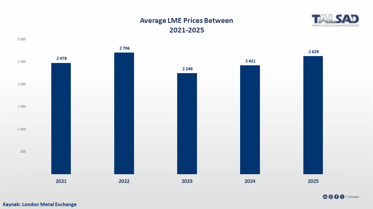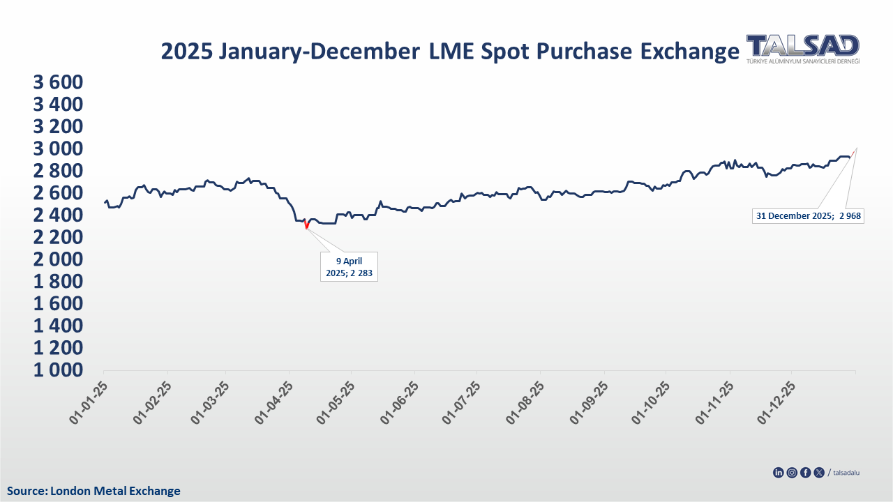 Londan Metal Exhange Aluminium Prices (January 2025 - December 2025)