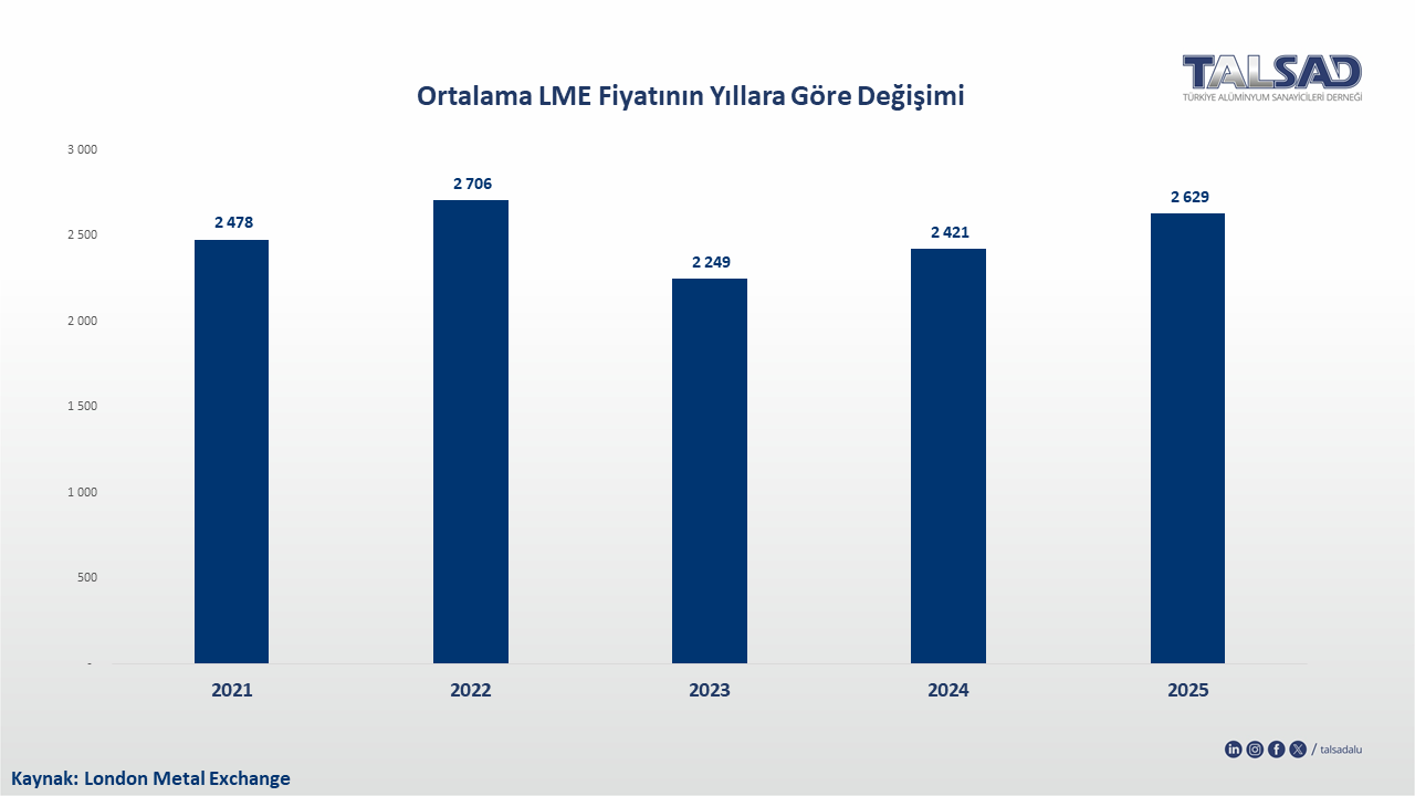 2021-20255 Yılları Arasındaki Ortalama LME Fiyatları